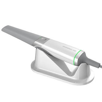 口腔内スキャナーは、お口の中を専用の小型カメラでスキャンし、3Dデータとして記録するスティック型の装置です。装置を軽く歯にかざすだけで、短時間で情報を取得できるため、型取りの不快感がほとんどありません。